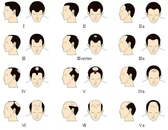 According to Norwood classification, what is your hair loss type. It is useful to know this in advance. You can find the hair loss type by looking at the picture below. In Norwood 6 and 7 types of hair loss, the probability of unsuccessful hair transplantation will also be high.